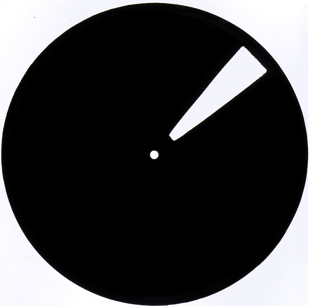 disc, hiding all but a narrow slot of the disc image, rotates rapidly,